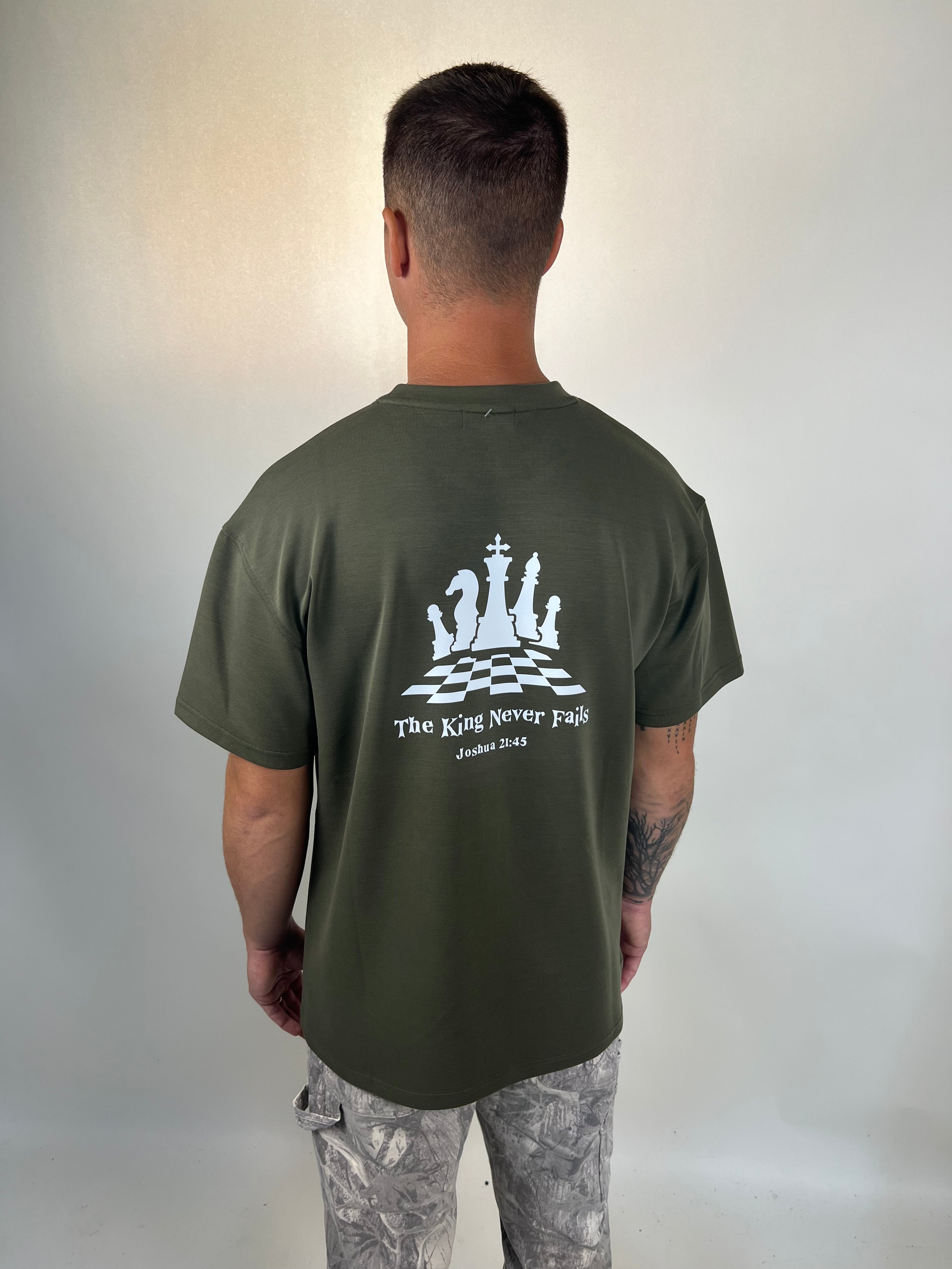 Faith-fueled and effortlessly smooth, this buttery-soft army green tee blends comfort with purpose. Designed to inspire strength and trust in every move, it’s a reminder that the King always prevails.