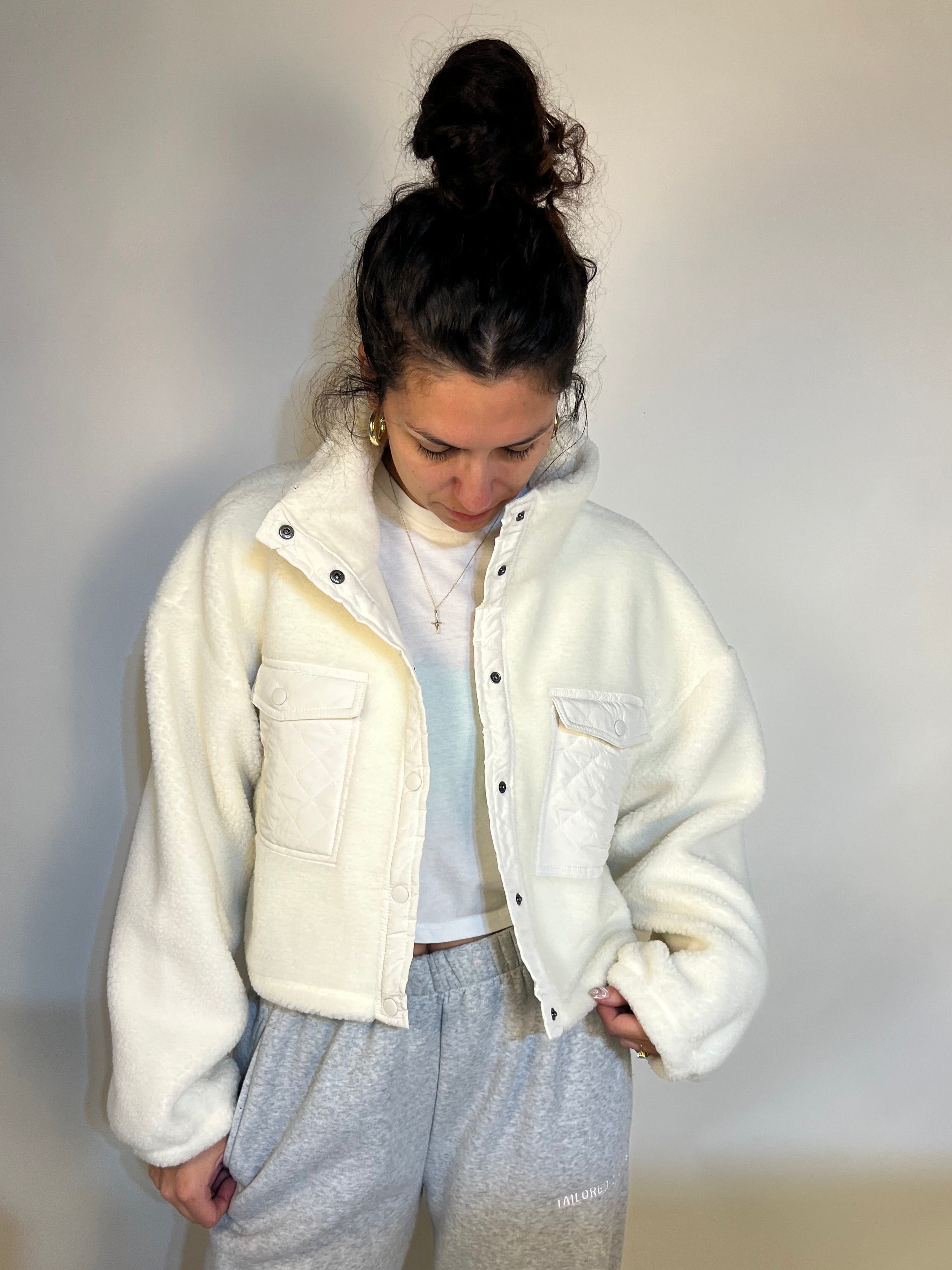 Design: Cropped silhouette with quilted chest pockets, snap-button closure, and subtle “Tailored Cactus” logo detailing on back